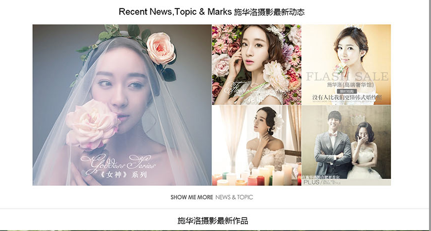 凭借对时尚敏锐的洞察力与独特的审美能力,运用娴熟的细致摄影化妆技术和对潮流前言的触觉; 亲手为您打造别具一格的高端韩式婚纱大片; 如同韩剧一样,清新,自然,优雅的拍摄风格,低调奢华的拍摄场景, 广受国内新人的热烈追捧。