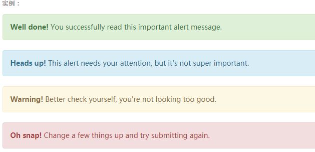 警告框:.alert 警告框组件通过提供一些灵活的预定义消息,为常见的用户动作提供反馈消息。