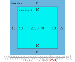 - padding和border不被包含在定义的width和height之内。对象的实际宽度等于设置的width值和border、padding之和,即 ( Element width = width + border + padding )