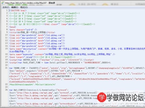 - 会出现如图所示的页面,这个页面所显示的就是该网页的HTML代码。