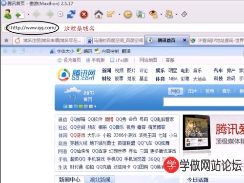 - 域名,因为网页是放置在网络中的某台计算机中,要访问它就需要知道这台计算机的IP地址,但IP地址比较难记,所以就推出了域名系统,如www.****.com等。