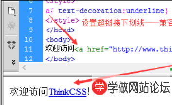 html中设置超链接展现下划线-默认一切超链接(锚文本)显现下划线CSS代码: