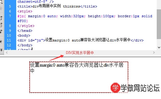 <div id="jz">配置margin:0 auto兼容各大阅读器让div水平居中</div>