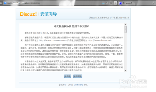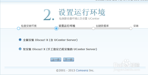 - 选择 全新安装 Discuz! X (含 UCenter Server) 点击下一步