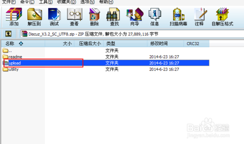 - 将下载下来的的DISCUZ程序压缩包进行解压,里面有一个upload文件夹。