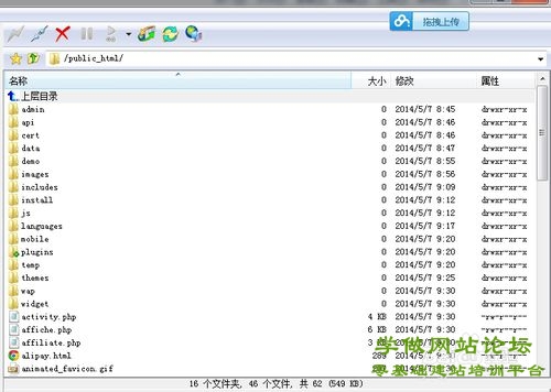 - 下载解压后文件包里有三个文件,选择upload文件,把里面所有的文件用FlashFXP上传工具上次到网站的跟目录下(用二进制的方式)