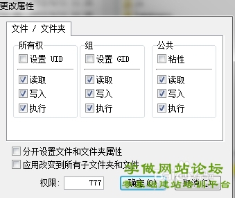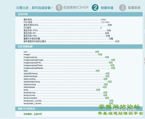 - 更改 cert、data、images、includes、temp、themes这几个目录权限及其所有子目录的权限设置为777,保证ECSHOP的正常运行.