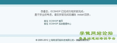 - 成功安装访问网店前台页面的网址为 :http://你的网店域名 网店后台网址为 :http://你的网店域名/admin/ (管理员帐号信息就是您在安装系统时所设置的管理员信息)。