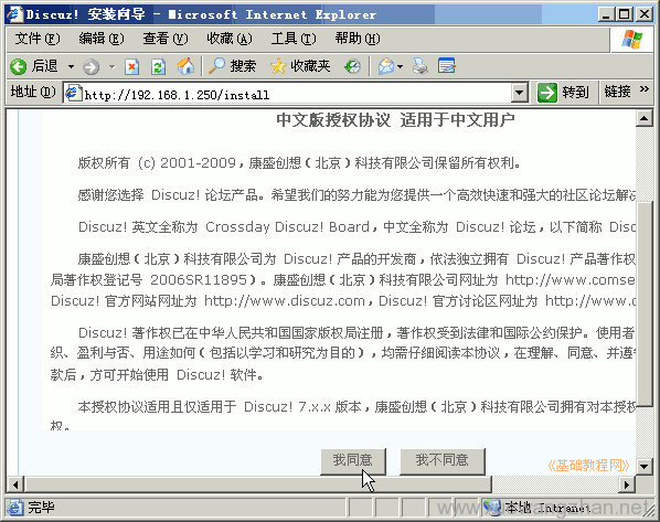 2)打开IE浏览器,在地址栏输入 http://网站域名/install 开始安装,如果使用的是VPS,(相关知识:什么是VPS)设定了固定ip地址,那么就用ip地址访问,如下图: