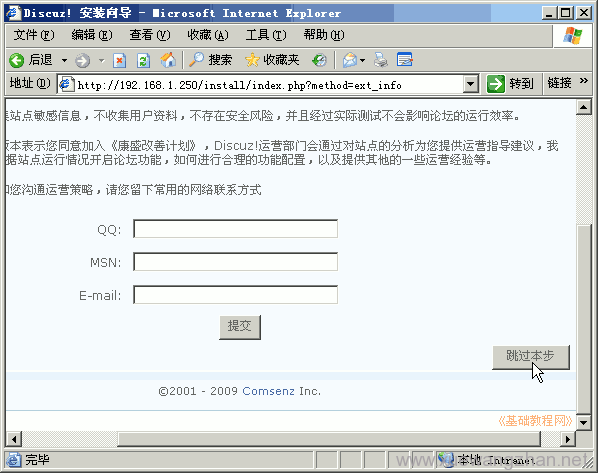 6)经过一阵安装后,出来填写联系方式,这儿可以填写也可以跳过;