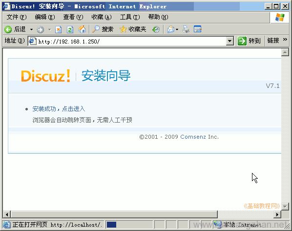 7)稍等完成安装,然后会自动跳转到论坛网站首页;