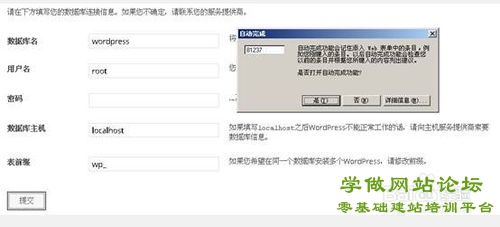 - 填写你网站的名称,后台管理员用户名和密码,这些内容不用怕填错,以后可以在后台进行修改。填好后,点“提交”;