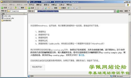 - 创建好数据库后,回到之前打开的 http://localhost/wordpress/ 窗口中,然后再点击“现在就开始”,会提示需要填写相关的数据库信息,数据库名,就是上一步新建的数据库名了,默认数据库的帐号是root , 密码没有设置就为空了。