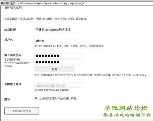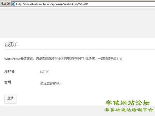 - 这样就提示wordpress安装成功!