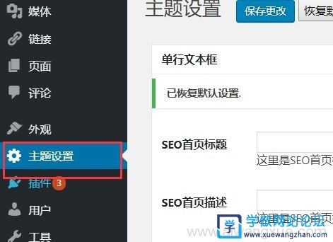 - 安装好Wordpress模板之后,可以在网站后台对网站前台进行设置。点击后台的【主题设置】,可以对网站进行SEO优化设置,如设置网站标题,网站描述,网站关键词。
