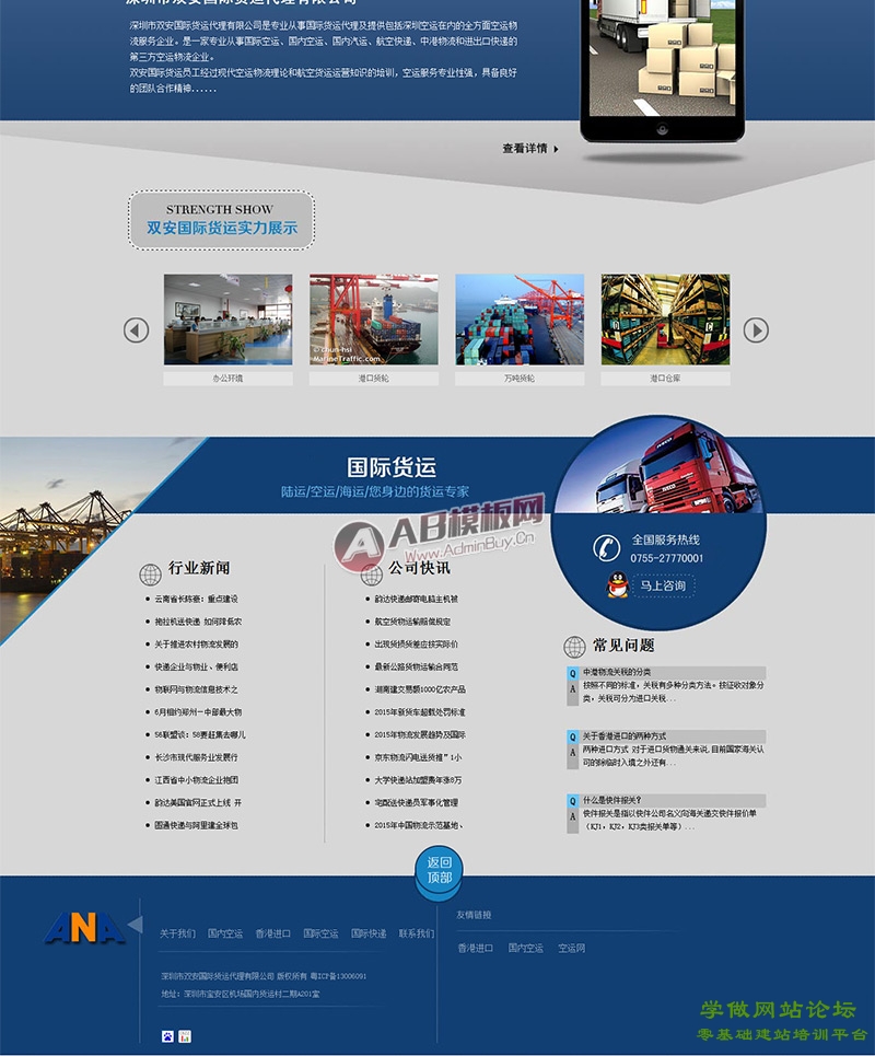 下面是快递物流公司网站版面图: