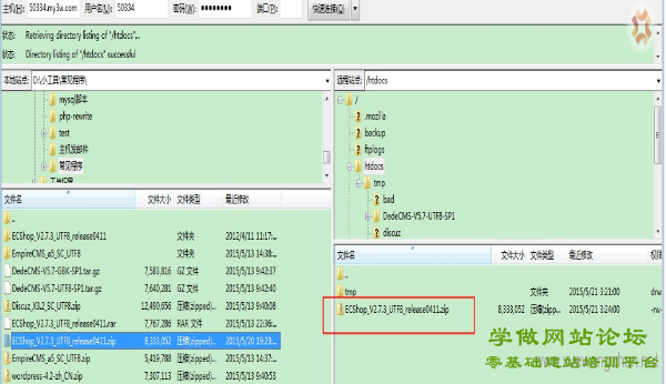 - 将 电子商务网站ECShop程序通过 FTP软件上传到主机上的 /htdocs目录。