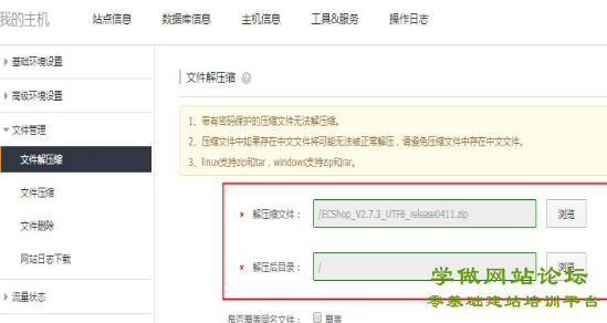 - 在主机管理控制台将程序解压到根目录。
