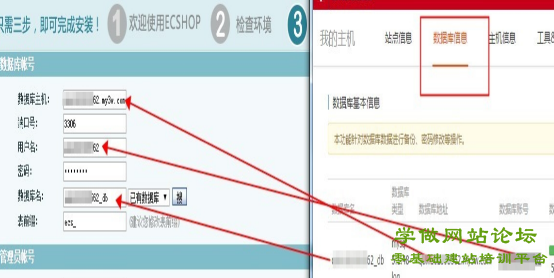 - 请注意数据库的配置方法。数据库的连接地址不是localhost,而是主机cp控制台->数据库信息页面中的数据库信息。