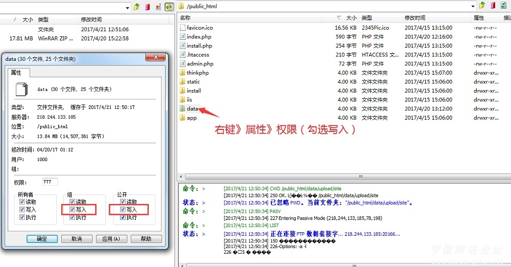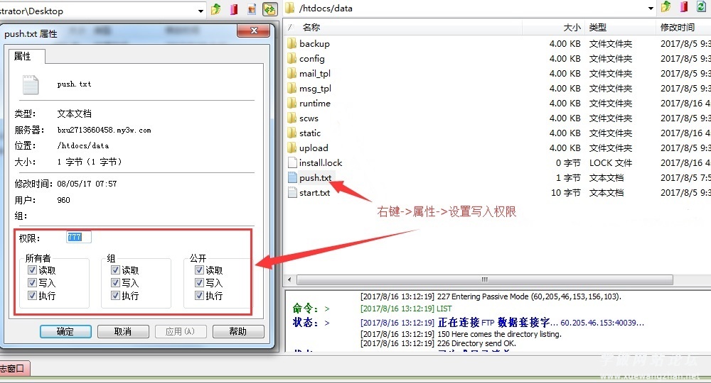 注:教程演示使用的FTP软件,不同软件操作界面不同。