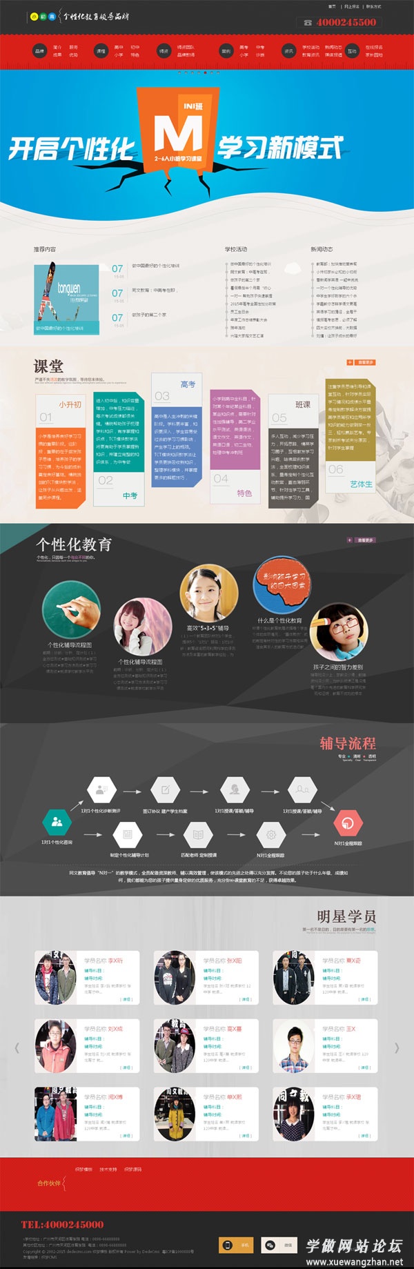 教育机构网站是一种针对于教育行业的网站类型,教育网站采用DIV+CSS布局,宽屏设计。教育网站页面一般包括学院首页、教师风采、课程介绍、推荐阅读、加入我们等页面。