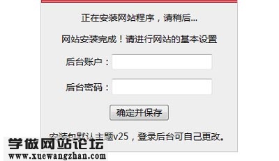 - 点击"确定并保存"后,即可进入到后台。(安装包默认的主题v25,如需更改主题请到"基本设置"-"主题设置" 下载并应用主题)