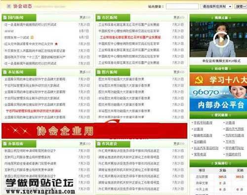 协会网站与团体类型网站是一种类似于门户网站的一个种类,但它的栏目却不像门户网站那么繁杂,而是针对于自己所在的协会和团体方面的事业,用来发布或交流本行业的相关信息。一般网站的导航可以分为:部门介绍,办事指南,作风建设,领导信箱等。