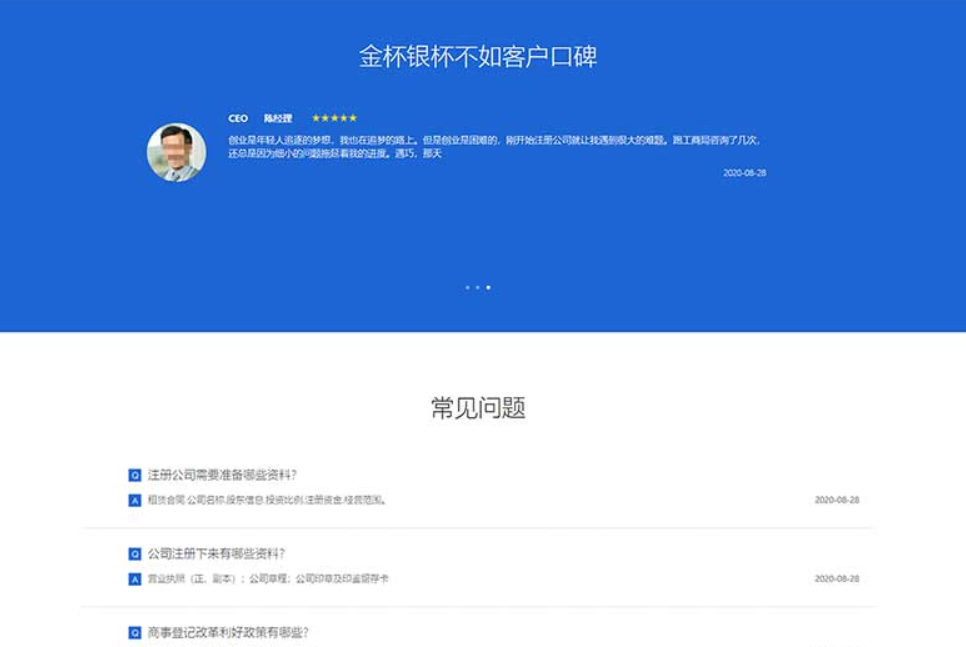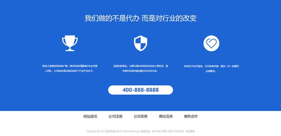 层次结构是设计的重要原则,有助于你的网站逻辑清晰。一般单页式网站的排列层次是这样:头图banner介绍、企业介绍,然后是重要产品展示、团队成员、详细业务介绍、媒体报道等,网站靠后部分则是留言表单、联系方式。