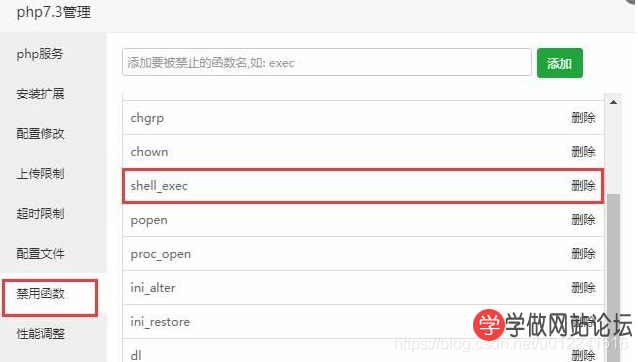 - 取消php禁用函数 shell_exec,在PHP里面删除这个参数