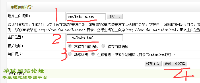 - 修改好路径之后,选择“不保存当前选项”,再点击【更新主页HTML】。这样Dedecms织梦手机端网站就更新好了。