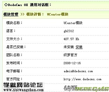 然后进入后台,模块会出现如图UCenter 模块的选项