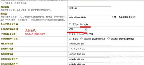 首先我们登录Dedecms网站后台,然后点击左侧菜单中的核心=》频道模型=》内容模型管理=》普通文章=》更改 =》会员许可投稿级别【选择游客就可以了】/是否支持会员投稿=》选择支持。