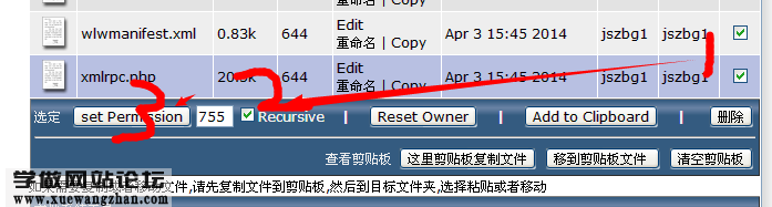 第二部,选中Recursuive按钮,打上勾,并且在框框内填上755权限即可。