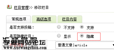 - 首先把不需要调用的栏目设置为“隐藏”;