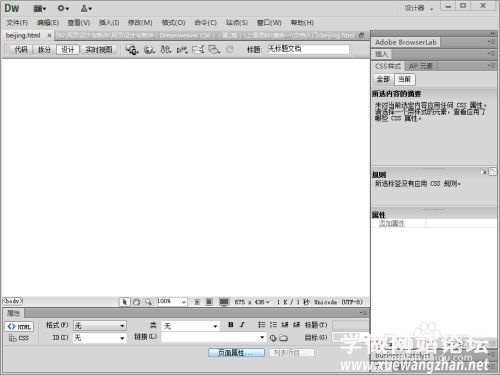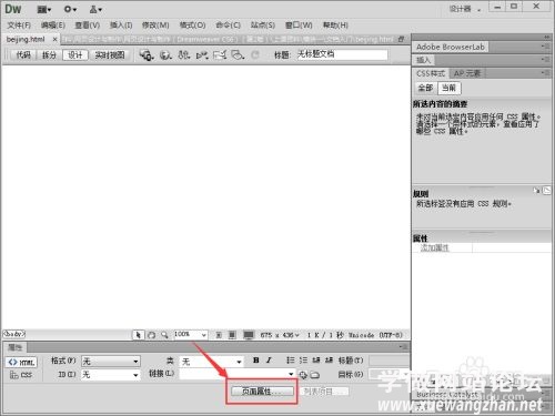 - 单击属性栏中的“属性”按钮,将会弹出网页属性对话框。