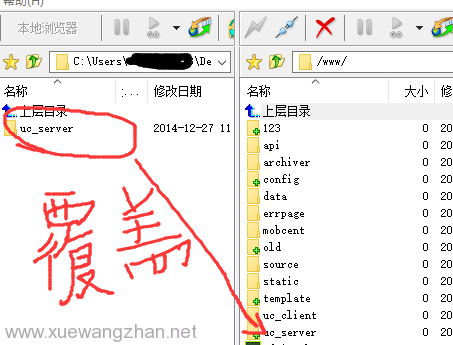 第二步:将下载的压缩包解压出来,将特别里面的uc_server文件夹通过FTP软件上传到自己空间的根目录下(一般为web文件夹);