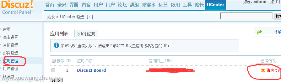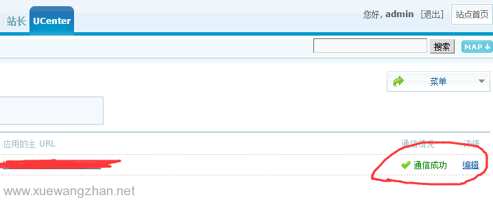 第四步:查看在uc_server后台的应用管理,是否显示通信正常?