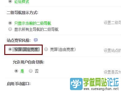 - 为了一些论坛版面不变形,我们需要对网站的宽窄风格进行修改:界面---------界面设置---------站点宽窄风格 设置为 窄屏(固定宽度)-----------提交;