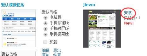- 进入论坛后台,点击“界面”----“风格管理”------“找到自己刚上传的模板,点击安装”