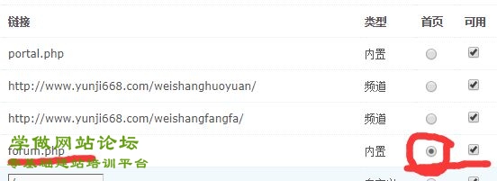 - 在后台-界面-导航设置-主导航,将首页的单选按钮选择为forum.php,如下图: