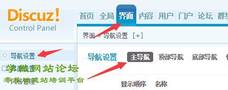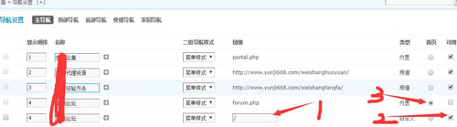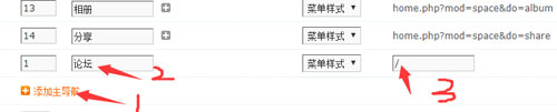 - 点击“添加主导航”新建一个导航栏目,名称写“论坛”,链接写“/”。如下图: