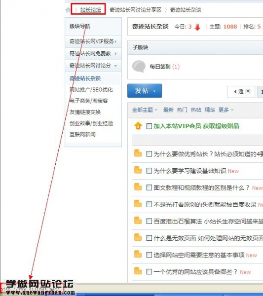 将<a href="forum.php"修改成<a href="/"即可!进入版块后,面包屑导航就会是贵站的首页地址。修改后效果。