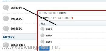这里建立如图的两个分区和版块以及在创建版块1下创建了3个子版块。