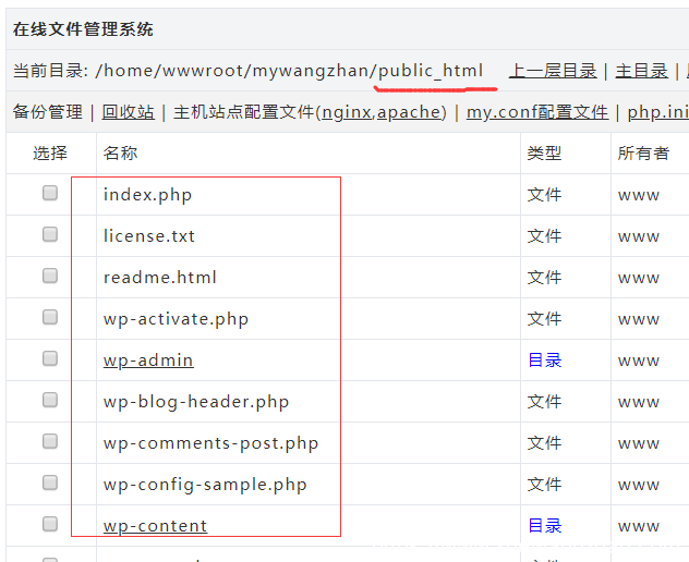 - 然后上传网站程序,支持上传ZIP压缩包再解压。