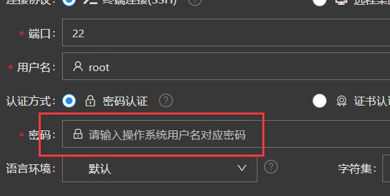 3、填写操作系统用户名对应的密码,如果这个密码忘记,可以在“密码/密钥”里重置实例密码;