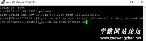 - 接下来,远程登录服务器,需要下载一个软件,Putty。输入IP,点击“Open”帐号root回车后,输入密码,远程是看不见步骤的,所以,输入后直接回车。登录成功,再输入宝塔安装命令。