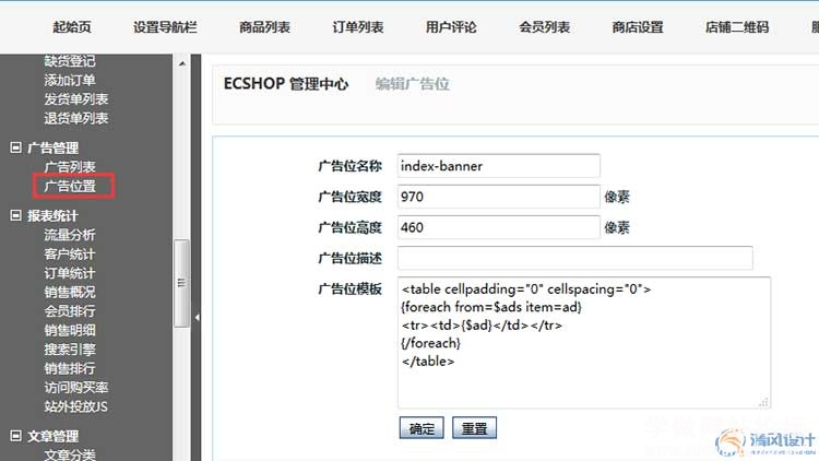 点击后台--广告管理--广告位置,新增一个广告位置,填写相关信息。