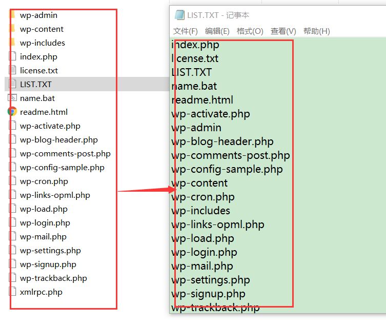 第三步:将bat文件放到要获取文件名的文件夹里,双击一下,就可以获取文件夹里所有文件名了,自动保存到txt文件里。