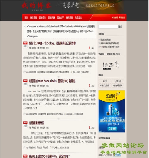 就是网站首页的文章发布的时间样式总是做不到和目标网站一样,最后还是张启亚老师帮我解决了这个问题。总算把整个网站仿下来了。不说了,上图吧,版面太长,只能截一部分。