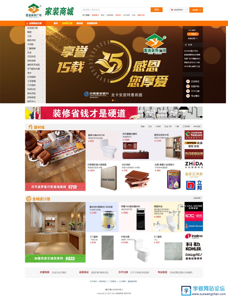 使用ECSHOP程序做的家装商城网站